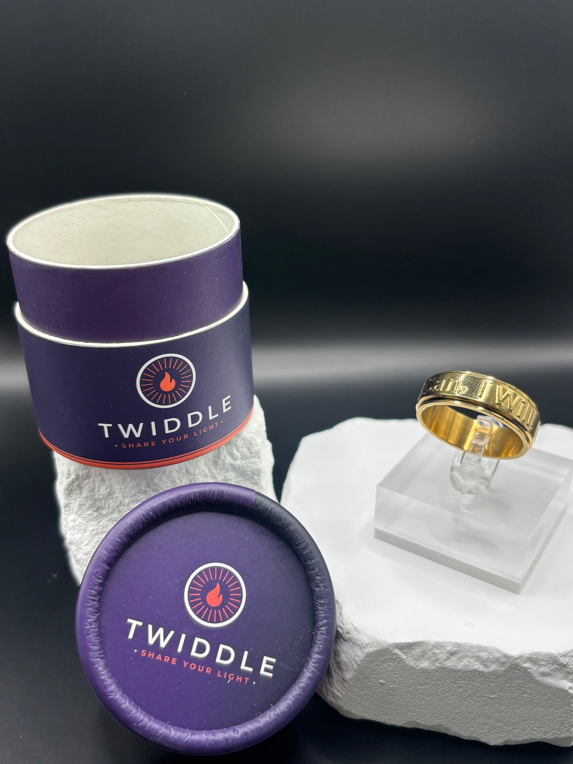 Find comfort in life’s challenges with this spinning ring engraved with the timeless reminder: “This Too Shall Pass.”
